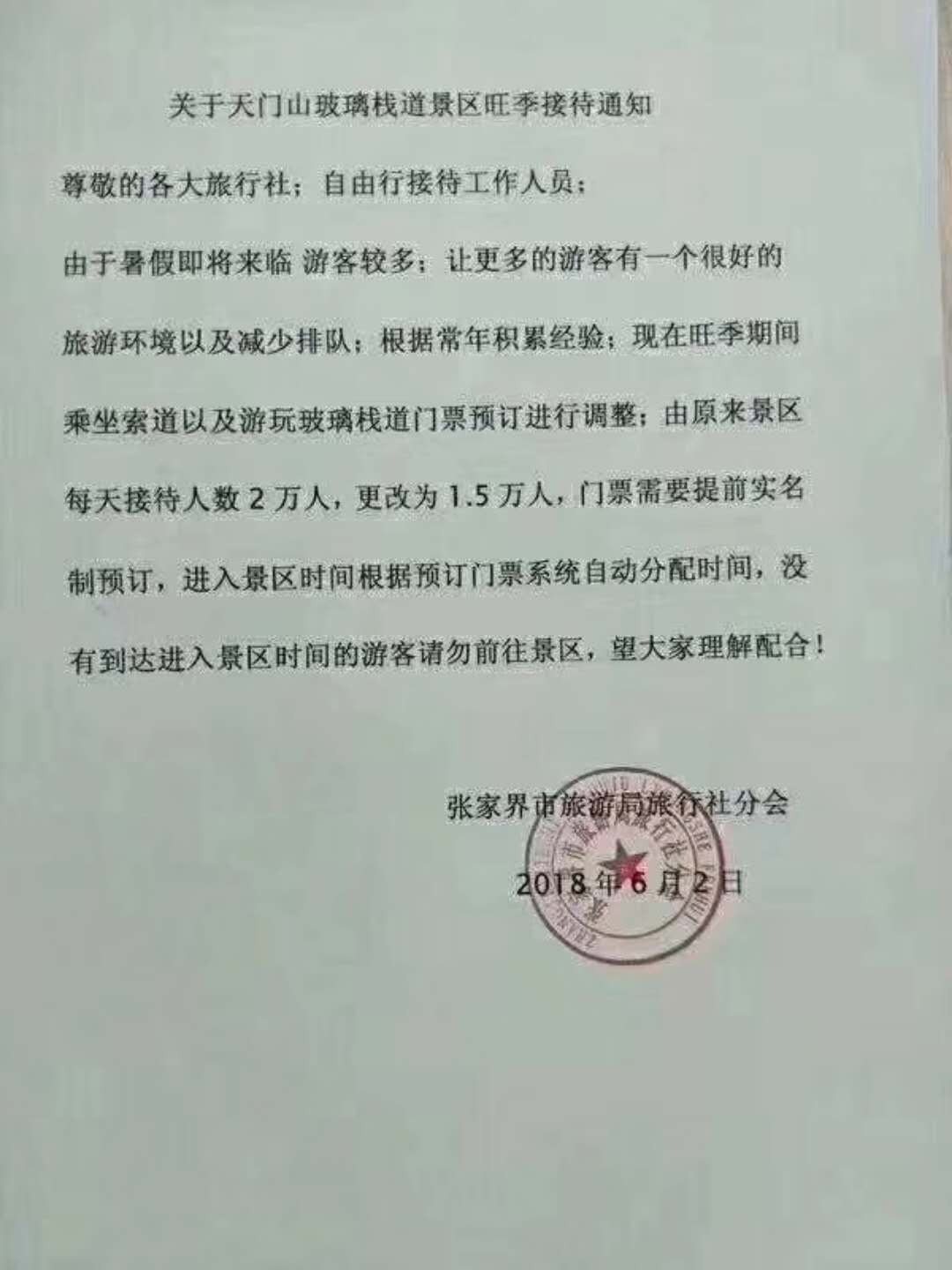 *關(guān)于天門山景區(qū)接待限量通知,須提前實(shí)名預(yù)定